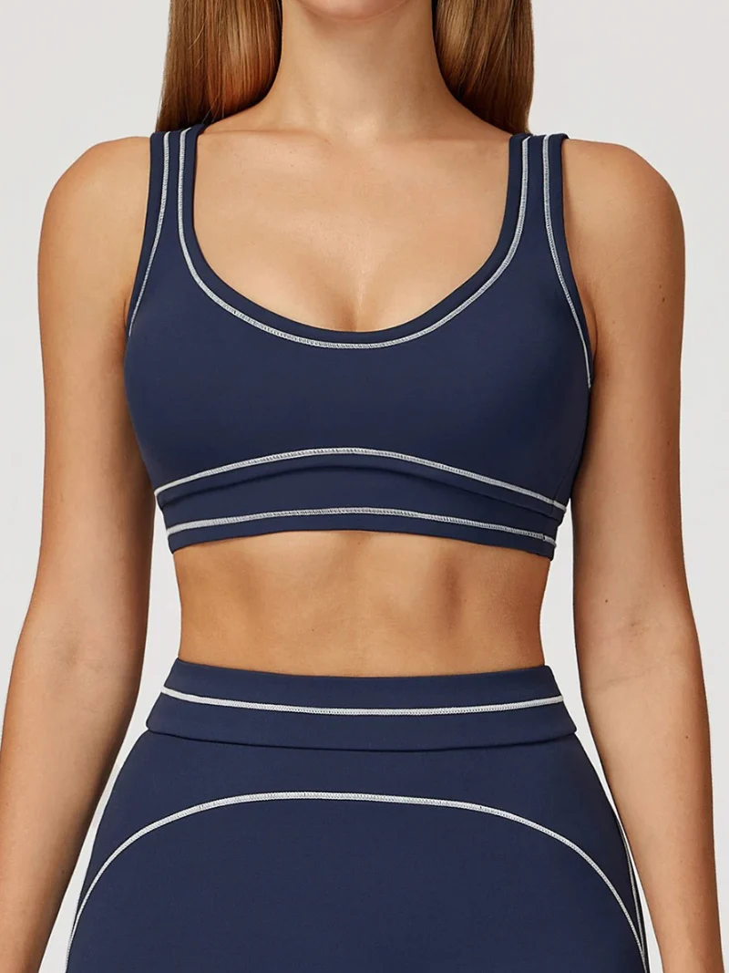 🩶 Brassière de yoga à couture contrastée – confort et maintien stylé