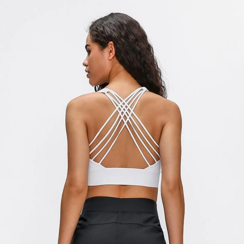 Brassière de Yoga blanche avec fines bretelles croisées dans le dos