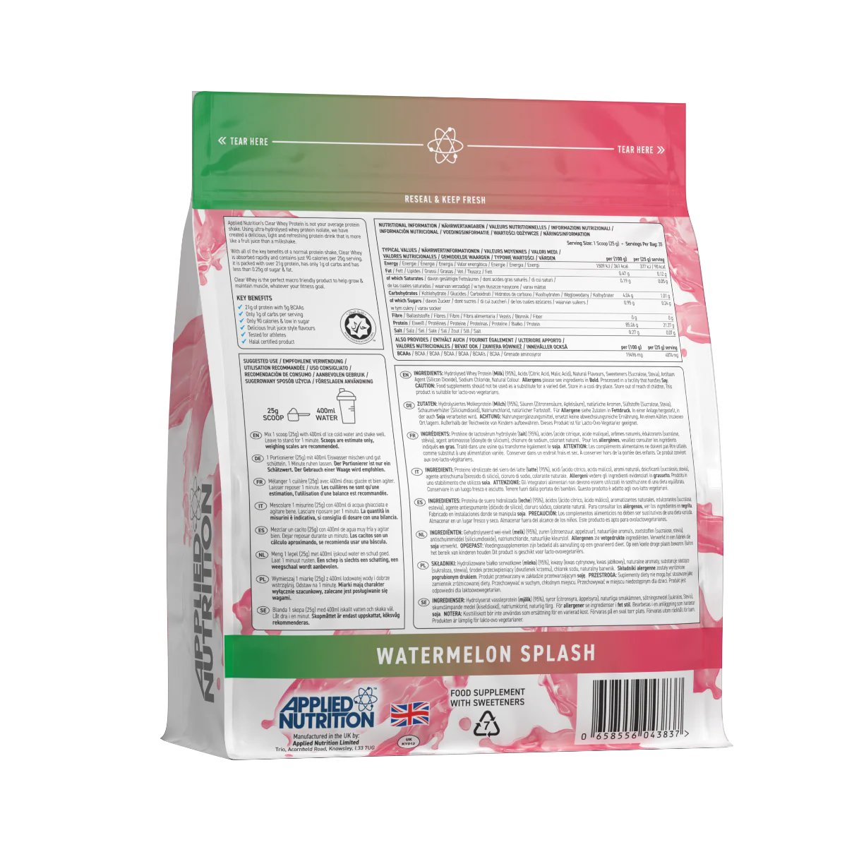 Clear Whey Protein d’Applied Nutrition n’est pas une boisson protéinée ordinaire. En utilisant un isolat de protéine de lactosérum ultra-hydrolysé, nous avons créé une boisson protéinée primée, délicieuse, légère et rafraîchissante qui ressemble plus à un jus de fruit qu’à un milkshake.