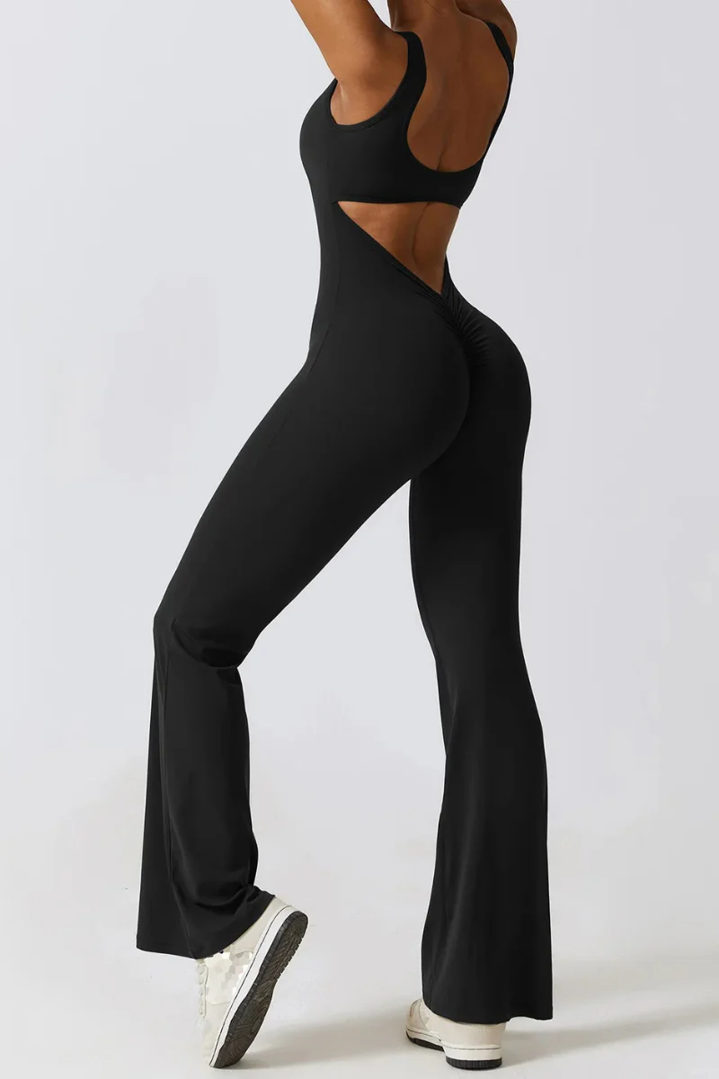 Adoptez l’élégance avec notre combinaison de yoga glamour et féminine. Son dos nu audacieux et son pantalon évasé apportent une touche chic à vos séances. Confectionnée dans un tissu confortable effet seconde peau, elle épouse vos mouvements avec grâce, tout en vous offrant une sensation inégalée de légèreté et de liberté.