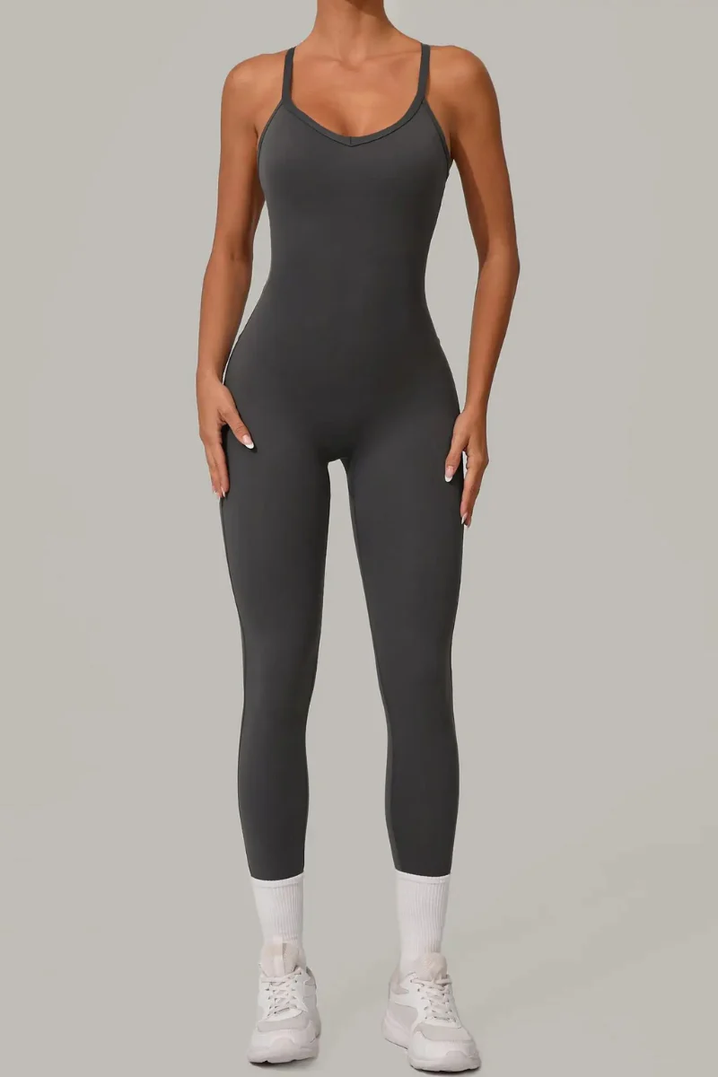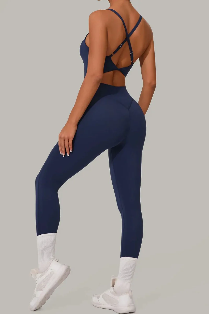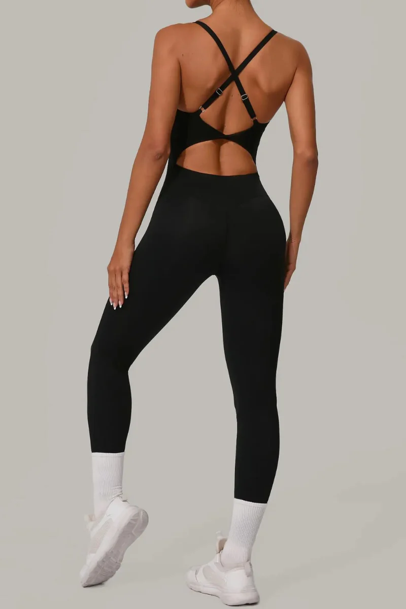 Cette combinaison legging a été pensée pour épouser chaque mouvement tout en sublimant la silhouette. Sa coupe fuselée affine les jambes, tandis que son dos croisé avec bretelles réglables crée un jeu de lignes flatteur et maintient parfaitement la poitrine sans gêner la liberté de mouvement.