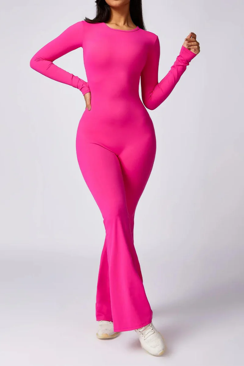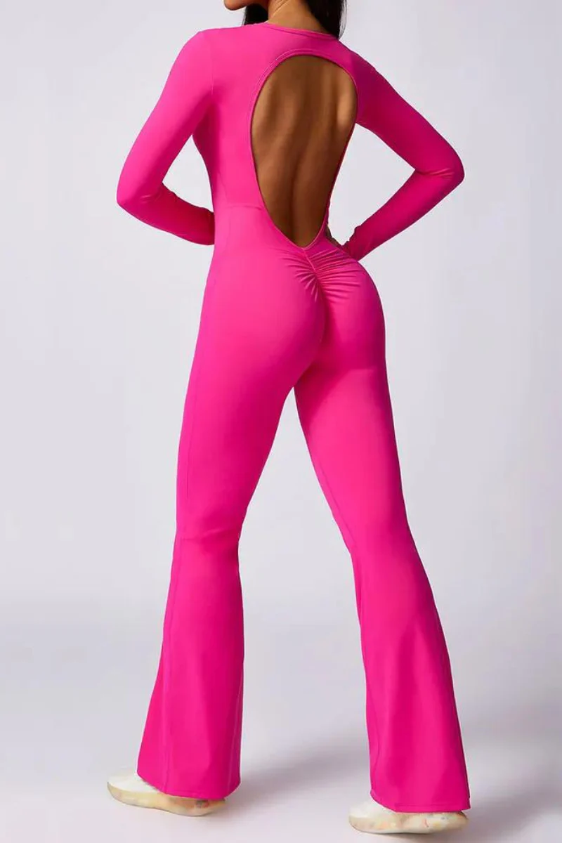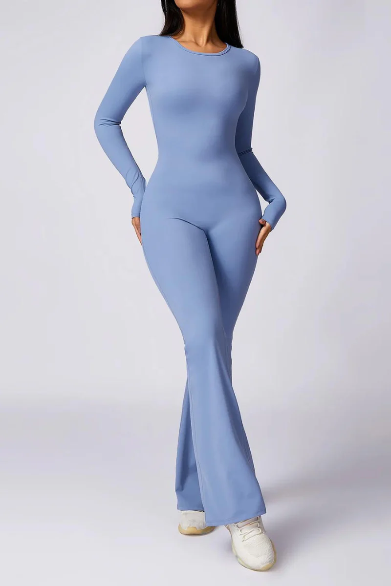 Découvrez la fusion parfaite entre élégance et confort avec notre combinaison de yoga à dos nu, manches longues et pantalon évasé. Conçue pour sublimer vos mouvements, cette tenue en tissu doux et fluide vous enveloppe de grâce et de liberté. Parfaite pour les asanas, elle apporte une touche chic et raffinée à votre pratique.