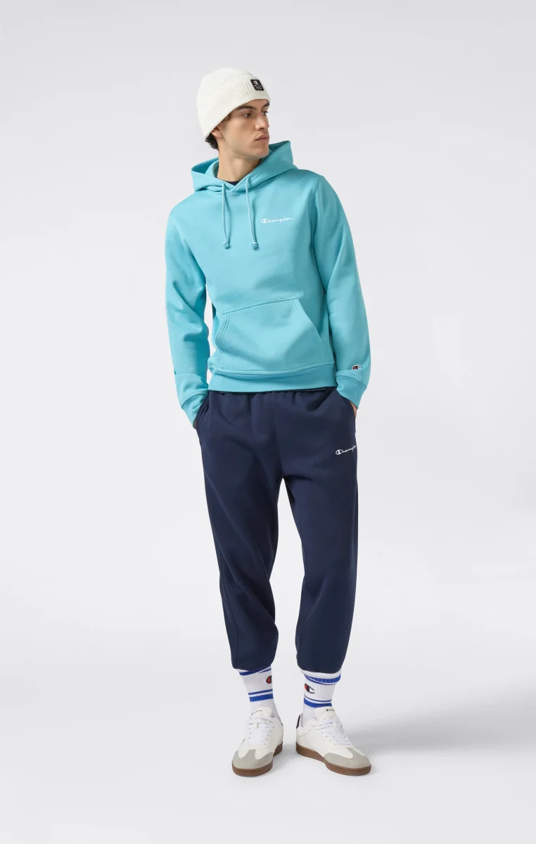 A timeless classic, reimagined with the comfort of modern materials. This hoodie from the Icons line is made from 310 g/m² soft, compact fleece with a cotton-polyester blend that provides warmth, durability, and a smooth feel against the skin. The brushed interior adds softness and extra thermal comfort—perfect for colder days. An embroidered Champion logo on the chest and the C logo on the sleeve complete the look with authentic style. The Standard Fit follows the body’s natural lines without clinging, featuring regular shoulders and a classic length—ideal for everyday wear.@@@Fabric: Heavyweight compact and soft fleece – 310 g/m² |Composition: 70% Cotton / 30% Polyester |Brushed interior for superior thermal comfort |Adjustable hood with drawstring |Front kangaroo pocket |Embroidered Champion logo on the chest |Fit: Standard Fit – versatile and comfortable with standard width and length. Closely follows the body without clinging. Regular shoulder cut.