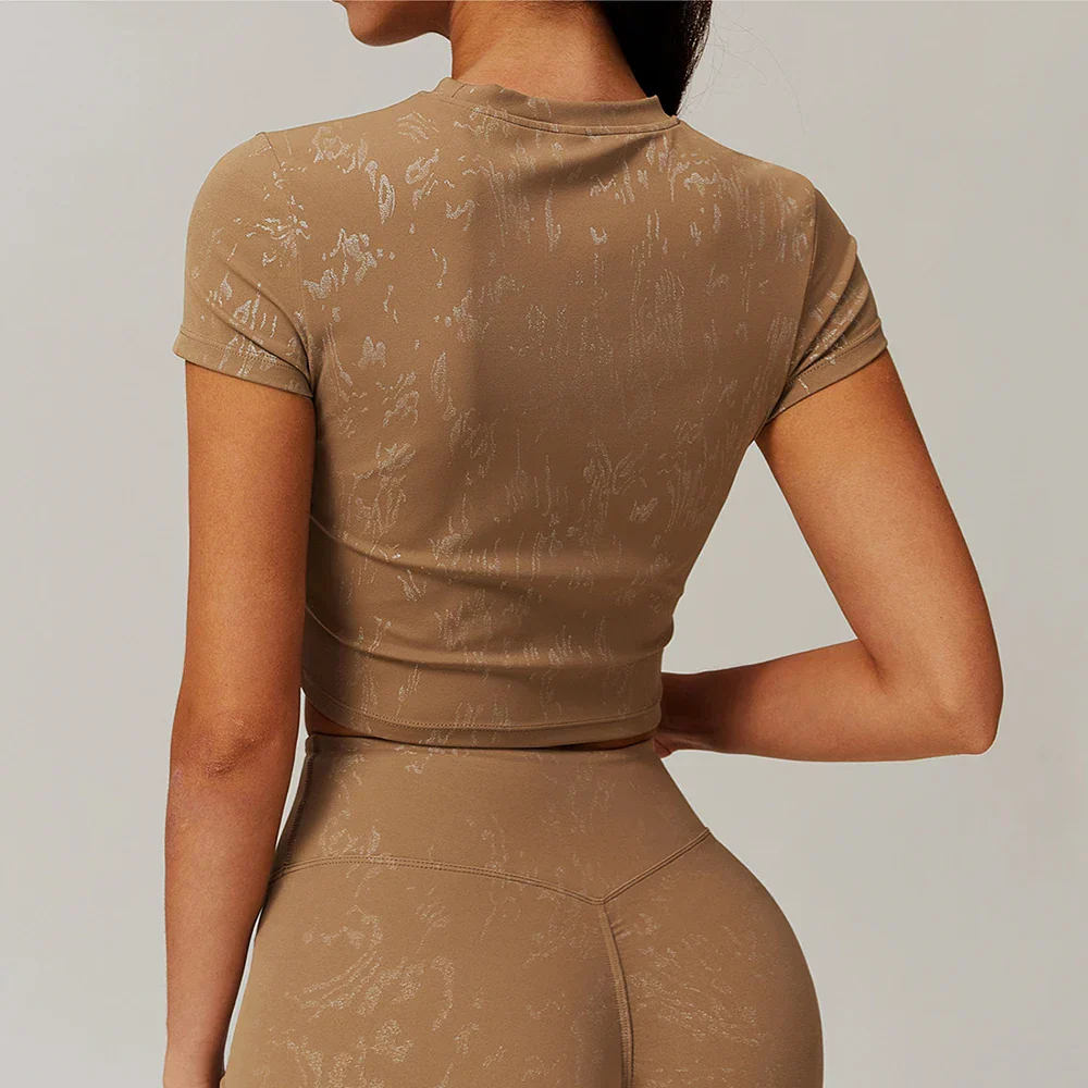 Ce t-shirt de yoga a été conçu pour allier style et liberté de mouvement. Sa coupe courte épouse la silhouette sans comprimer, offrant un confort optimal pour le yoga, le Pilates ou toute autre activité sportive. Son tissu extensible et ultra-doux procure une sensation seconde peau, tandis que son effet texturé subtil ajoute une touche d’élégance. Doté de manches courtes et d’un col rond, il assure un maintien fluide et agréable. Pour un look parfaitement harmonieux, il peut être associé à son legging assorti, créant ainsi un ensemble à la fois moderne et sophistiqué. Idéal pour une séance de sport ou une tenue décontractée, ce t-shirt se décline en plusieurs teintes raffinées, permettant de varier les styles selon les envies. Plus qu’un simple haut, c’est un allié incontournable pour conjuguer confort et élégance au quotidien.