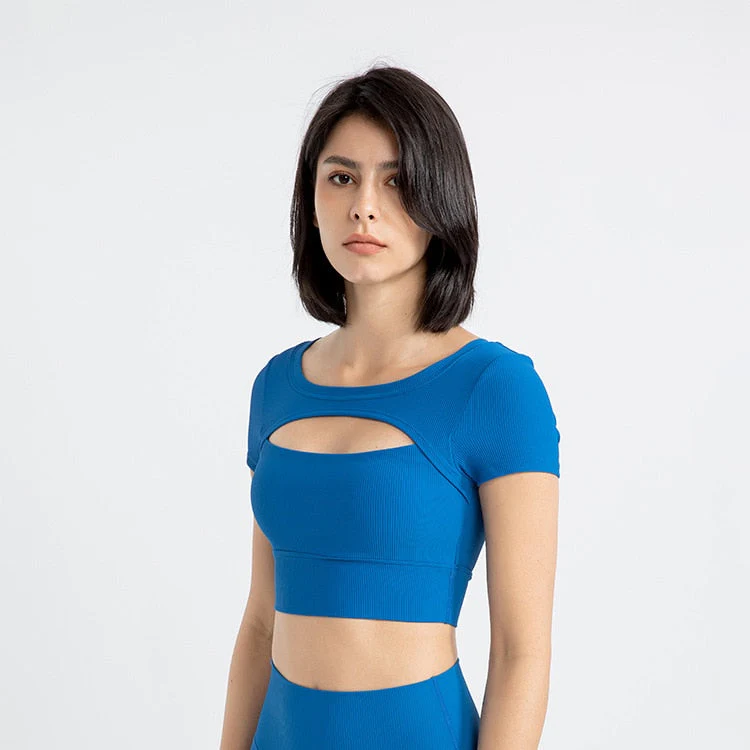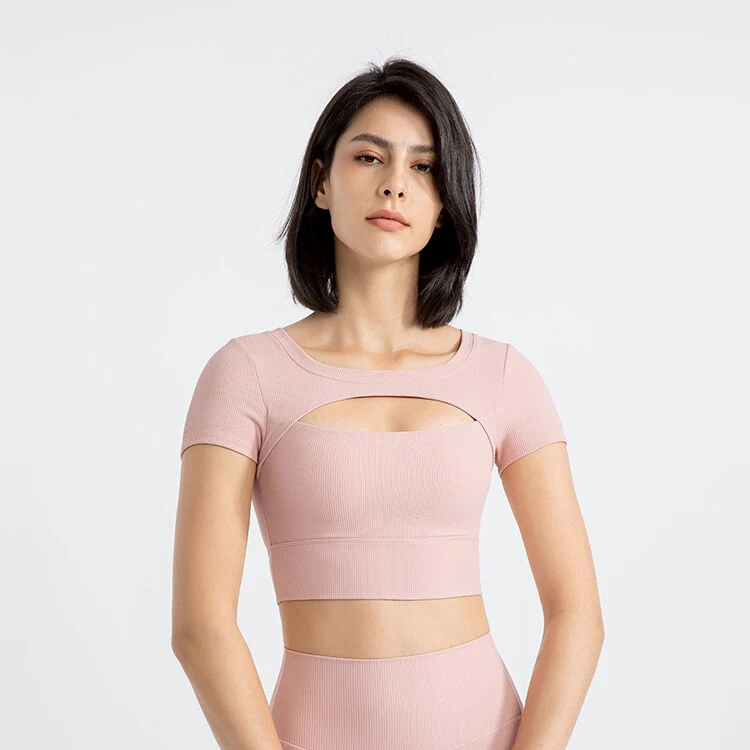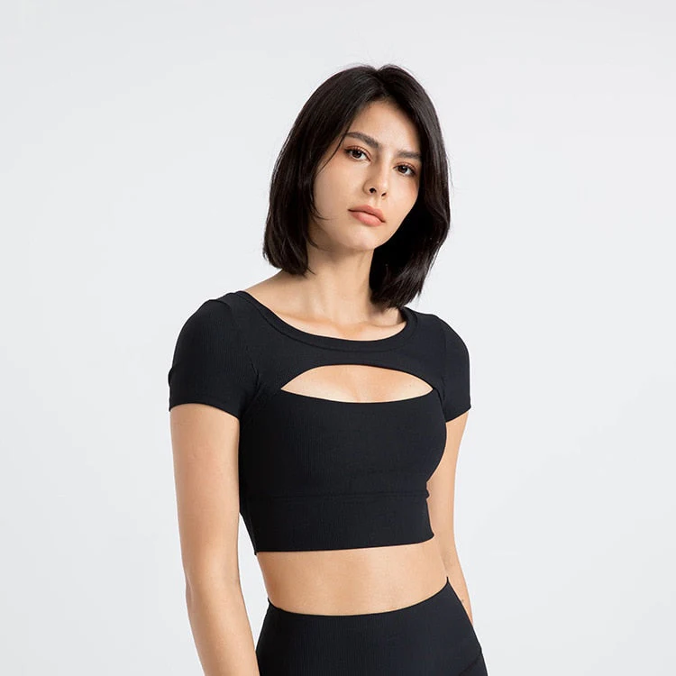 Ce crop top de yoga se distingue par sa coupe audacieuse, spécialement conçue pour les pratiquantes de yoga modernes. Arborant une longueur raccourcie, il dévoile subtilement le ventre, offrant une liberté de mouvement totale. L’ouverture gracieuse au niveau de la poitrine ajoute une touche de sensualité et favorise la ventilation pendant l’exercice. Confectionné dans un tissu extensible et respirant, ce haut garantit un confort suprême. Son design esthétique fusionne élégance et utilité, en faisant le choix incontournable pour les séances de yoga ou les moments de détente active, où la mode rencontre la forme physique.