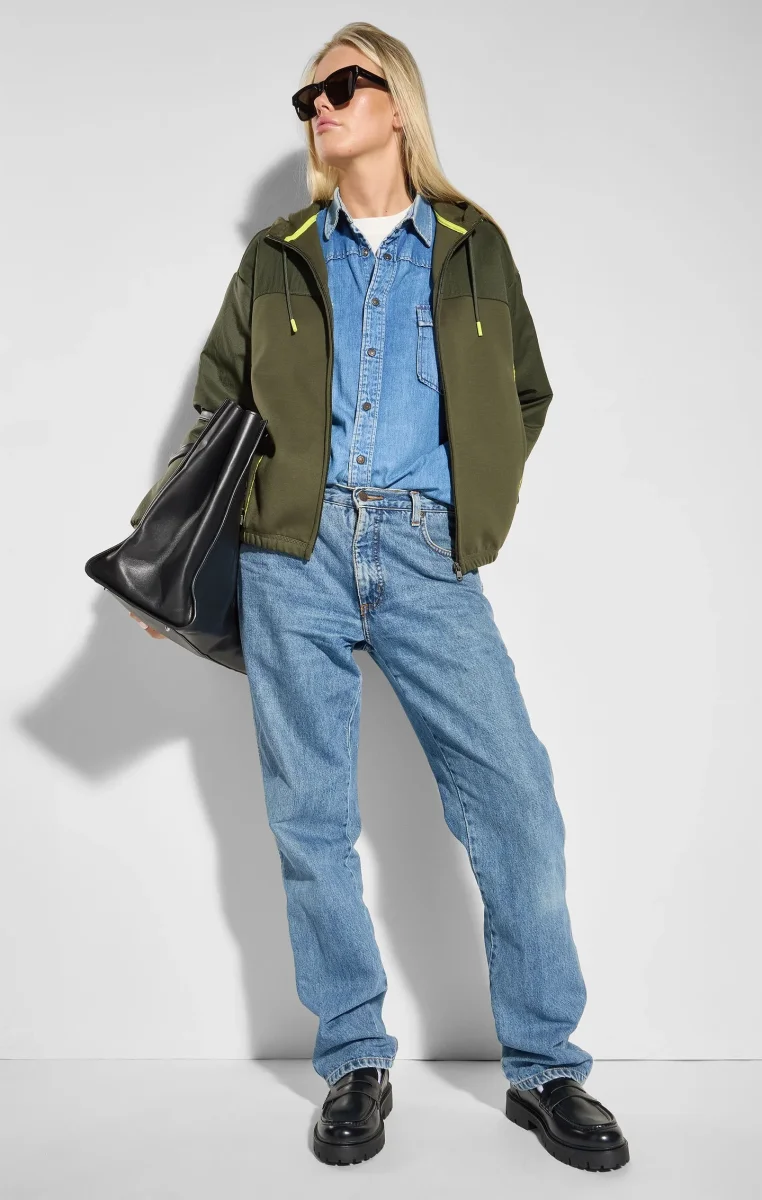 Made from a smooth, stretchy, soft fabric, this women’s zip up hoodie features contrast piping, two front pockets and reflective detailing. Be seen this season.@@@Standard fit: comfortable fit, combines comfort and practicality |360 gsm Interlock fabric, stretch and soft, smooth inside and out / 40 gsm Ripstop Woven Nylon inserts |69% Polyester, 26% Cotton, 5% Elastane / 100% Nylon |Full-zip closure |Contrast piping |Elastic waistband |Tonal C logo print to left sleeve and silver reflective prints to back |2 front pockets |Machine wash |Imported |Model is: 176 cm / 5′ 78″ and is wearing size S
